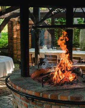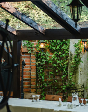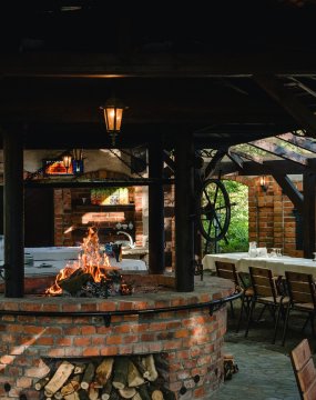The Grill Garden, immersed in the park's landscape, invites you to relax and feast in the beautiful nature. The Grill Garden perfectly blends in with the historic tree stand. It is a place where you can enjoy delicious dishes and admire the adjacent ponds from the terraces attached above them.